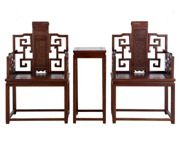 中式家具中向以雕刻著稱、雕刻中尤以審文、回文、滿卷為意、梯形、鳳爪、貓足、幾何形體為多;材料以珍貴木材為主,裝飾以雕漆、鑲嵌、貼附為多;直接彩繪、起線、倒楞最為普遍。